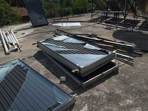 zahlreiche Sonnenkollektoren von den Dächern gerissen. Zum Glück