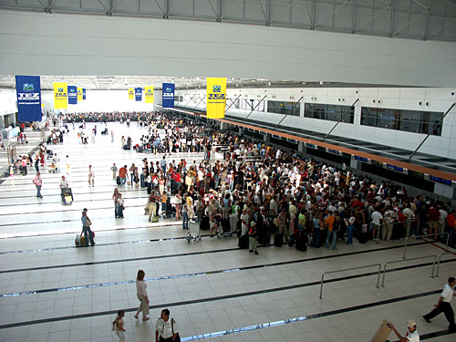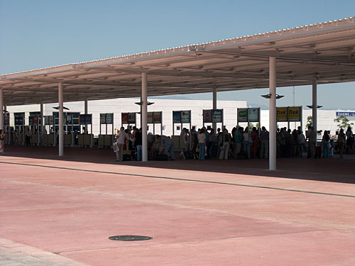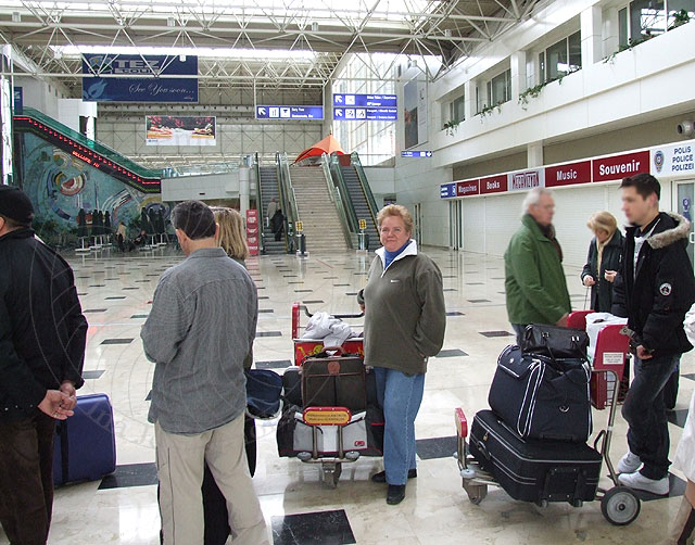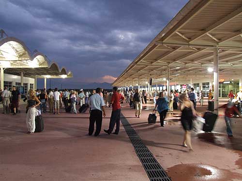 verlässt man mit seinem Gepäck das Flughafengebäude. Im Sommer