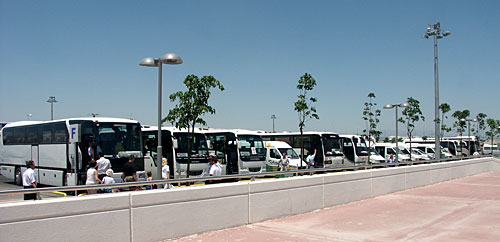 Bus oder auch zu Fuß) je nachdem wo der Flieger geparkt wurde.