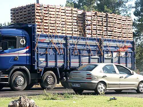 Straßen. Grundsätzlich wird so ein LKW nach Volumen beladen,