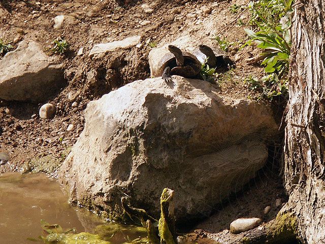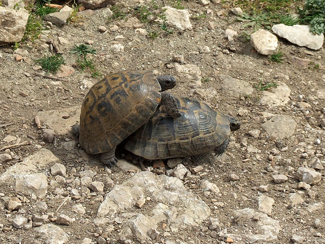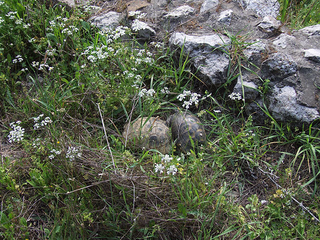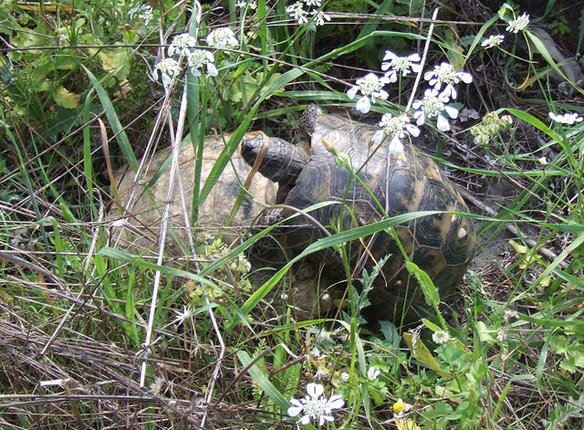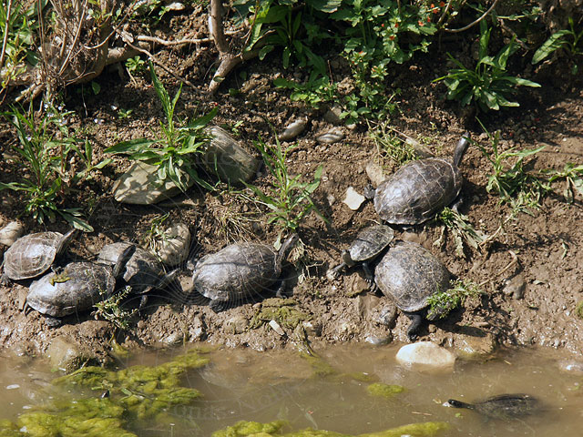 oft Schildkröten am Wegesrand, die nicht nur nach Nahrung suchen