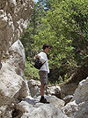 Zu Fuß die alte Straße bergan und dann über das Flussbett wieder