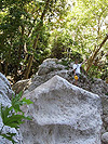 vorwärts zu kommen muss man über die Felsen tief hinab, um das