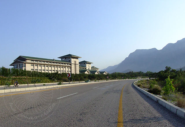 bereits ein mächtiger Hotelbau direkt an der viel befahrenen